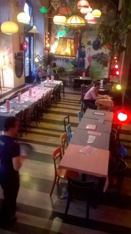Yksi ehdoton ruokapaikkalöytömme oli hulvattoman värikäs ravintola Szatyor, jonka sattumoisin löysimme Budan puolelta. Söimme kahden hengen illallisen juomineen ja ruokineen 15 eurolla. Ja ruoka oli erinomaista!
